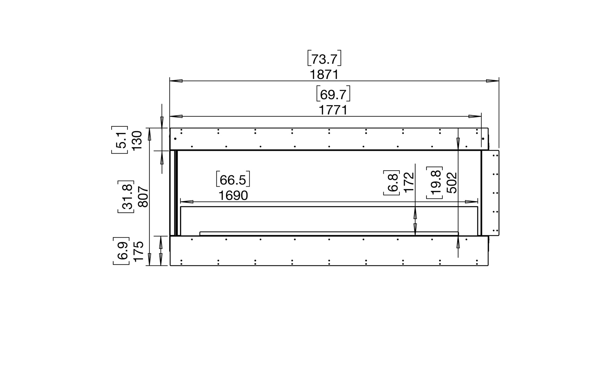 - Viewing Area Dimensions: 1771mm (W) x 340mm (D) x 502 mm (H)