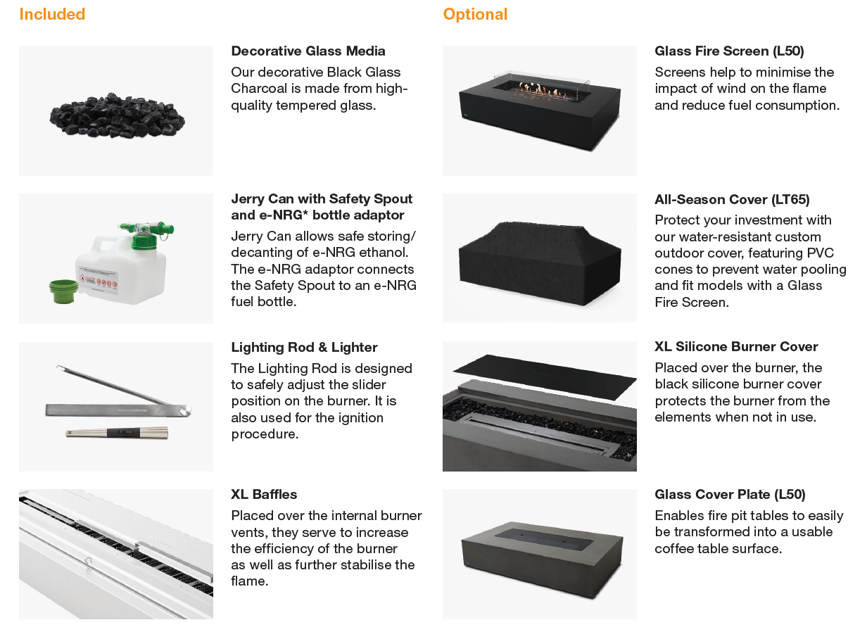 Made from durable Fluid Concrete or natural Teak, fitted with the EcoSmart XL900 Grade 304 stainless steel burner and powered by clean-burning e-NRG bioethanol, it's a smokeless, odourless fire solution that offers over 8 hours of warmth and ambience, along with a mesmerising flame.